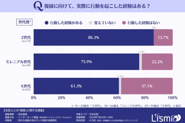 Z世代では86.3%という高い割合で、復縁に向けた具体的な行動を起こしています。