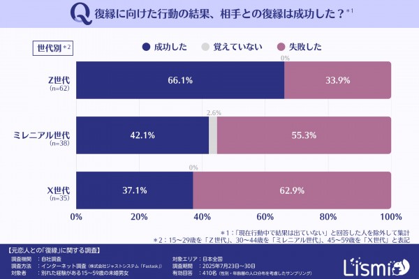 ここまでの調査結果をまとめると、Z世代は「復縁したいと思う人が多い」「実際に行動する人が多い」「そして成功する人も多い」という三拍子そろった特徴を持っています。