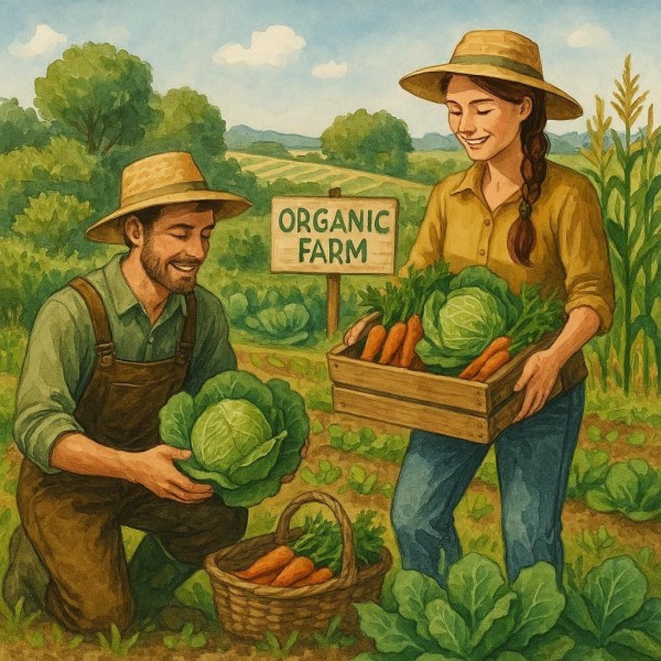 「有機栽培」は、化学肥料や農薬を使用せず、有機肥料(鶏糞、牛糞、米ぬか、油粕など)や天然由来の農薬を用いる農法。