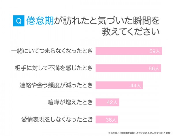 最も多かった回答が「一緒にいてつまらなくなったとき」(59人)でした。