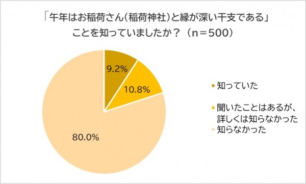 最近の調査によると、8割もの人が「午年とお稲荷さんの関係を知らなかった」と回答しています。