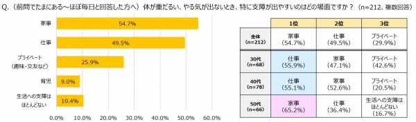 倦怠感を感じると答えた女性に、「特に支障が出やすいシーン」を聞いたところ、以下のような結果になりました。